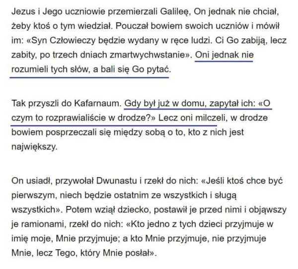 Dlaczego uczniowie bali się pytać Jezusa? (Mk 9,30-37)