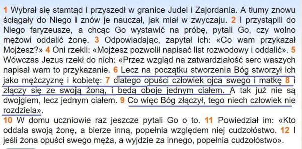 Dzisiejsza Ewangelia w oczywisty sposób skłania nas do podjęcia tematu małżeństwa, a jeszcze bardziej kwestii rozwodów, którą podsuwają Jezusowi faryzeusze, chcąc Go pochwycić w mowie (Mk 10,2). Podejście faryzeuszów do małżeństwa jest czysto legalistyczne i kazuistyczne: stawiają ...