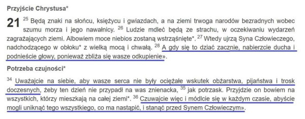 Ewangelia, którą rozpoczynamy czas Adwentu, brzmi nieco prowokacyjnie. Wpisuje się w temat adwentowego oczekiwania, tyle że na horyzoncie nie jest Boże Narodzenie, lecz przyjście Jezusa na końcu czasów. Jezus w mowie nazywanej eschatologiczną (Łk 21,8-36) zapowiada przyszłe prześ...